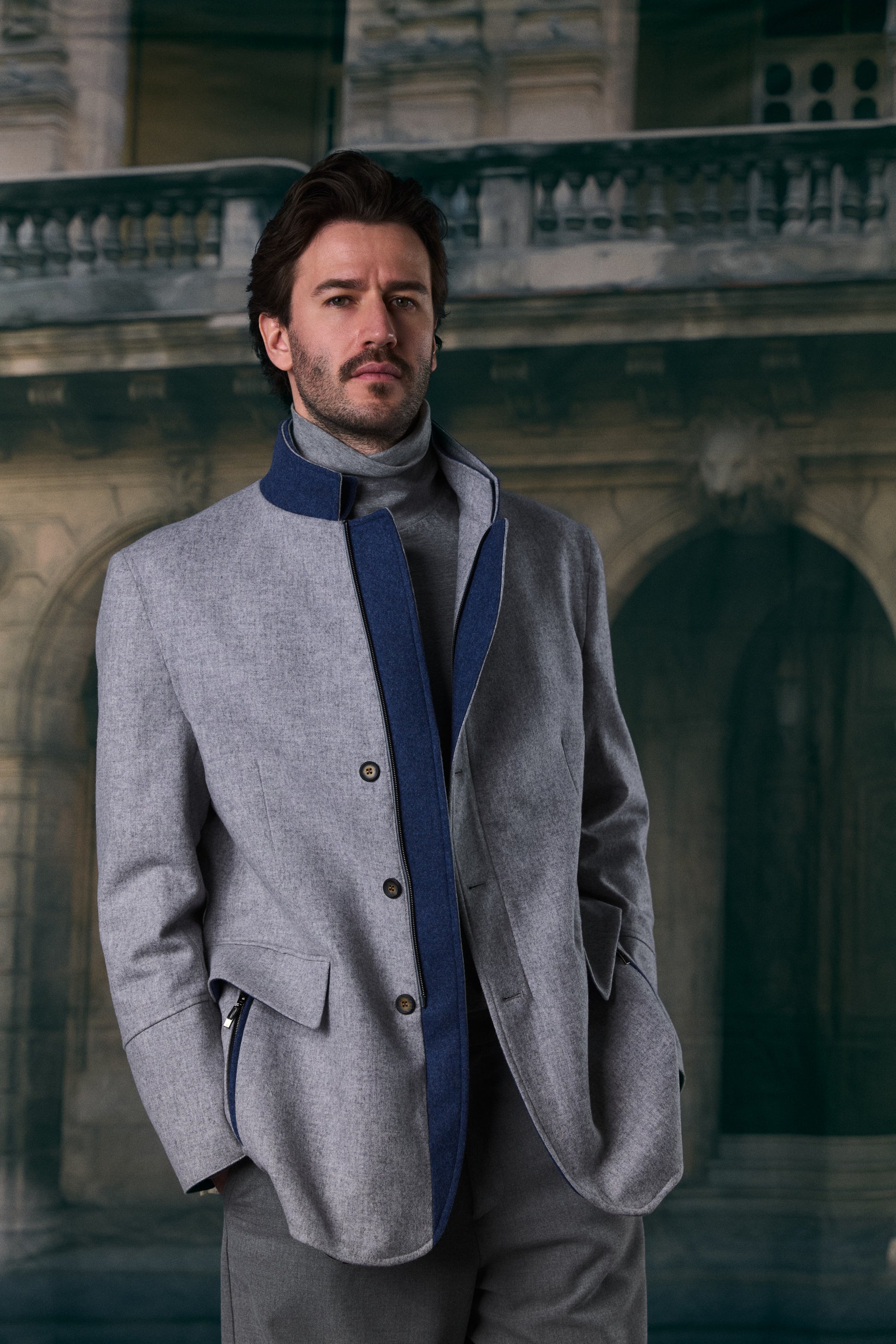 Alpenländisch im Look, unkonventionell im Design – diese Lodenjacke ist ein echtes Highlight. Neu aufgelegt in frischer Farbkombination: mittleres Grau mit royalblauen Akzenten, die perfekt harmonieren. Der gewalkte Loden ist wasserabweisend und atmungsaktiv, dazu kommen praktische Details wie aufknöpfbare Ärmelsäume und Reißverschlusstaschen. Innen überrascht die Lodenjacke mit farbigem, wattiertem Futter. Ob in den Bergen, in der Stadt oder als stilvolle Alternative zur Tracht auf dem Oktoberfest – diese Jacke zieht garantiert Blicke auf sich.