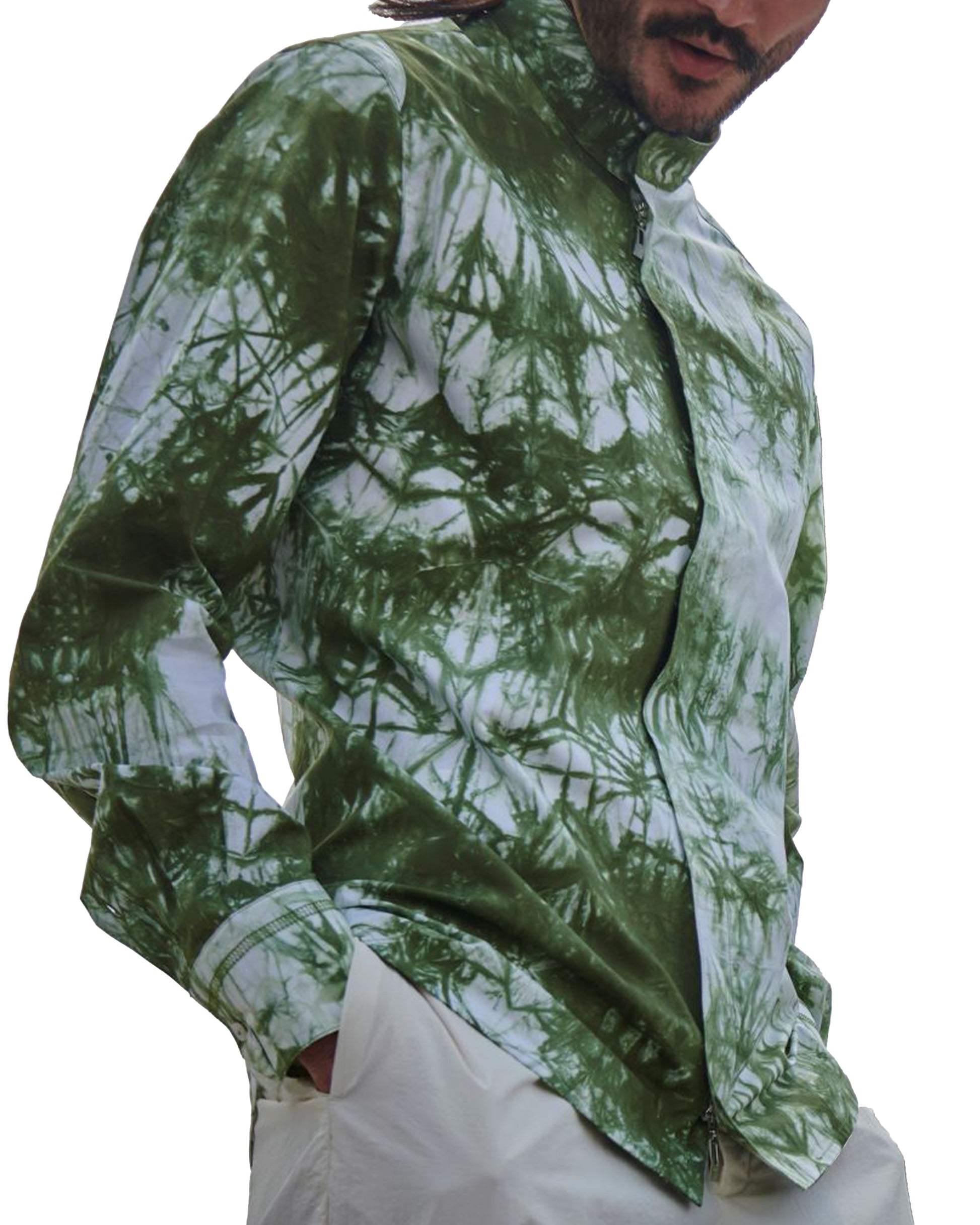 Batikmuster liegen voll im Trend. Der zersprengte Farblook versprüht ein Gefühl des Unkonventionellen und der Leichtigkeit. Das Reißverschlusshemd mit Stehkragen kommt richtig cool in dem neuen angesagten Grünton. Passt zu ziemlich allen Hosenfarben, am besten natürlich zu weiß.